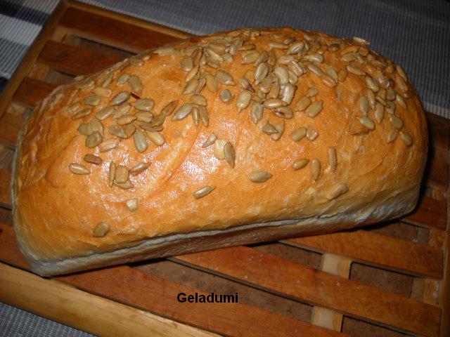 O painica obisnuita, numai ca... am indeplinit o pofta mica,sa aiba miez de floarea soarelui.Cum pofta era a jumatatii mele dragi, nici nu se punea problema sa nu fie pusa in practica.A iesit ce ne doream,meritul este al masinii de facut paine!